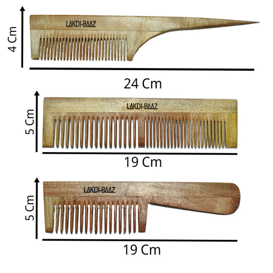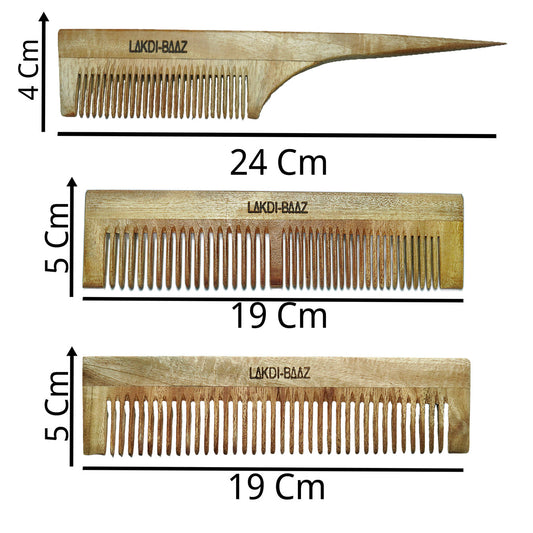 Buy LakdiBaaz Neem Wood Comb Wooden Tail Comb Wide Comb Wide & Narrow Wooden Comb for Hair Comb for Men and Women Set of 3