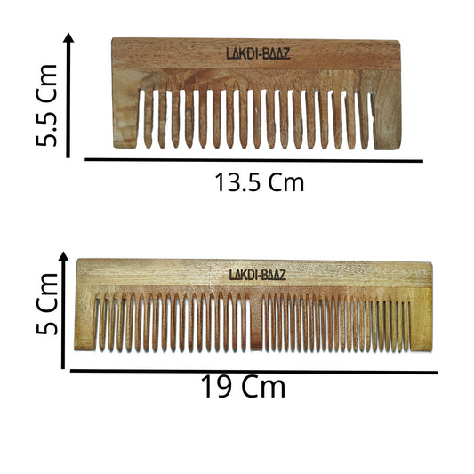 Buy LakdiBaaz Neem Wood Comb Shampoo Comb and Wide & Narrow Wooden Comb hair Kangha for both Men and Women Set of 2
