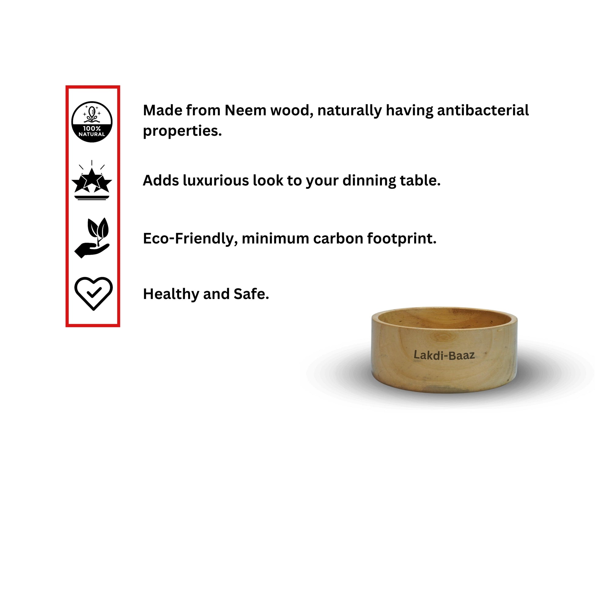 Buy Natural Non Toxic Wooden Bowl for Salad Made From Neem Wood No Color Used 600ml 6Inch/15cm Natural