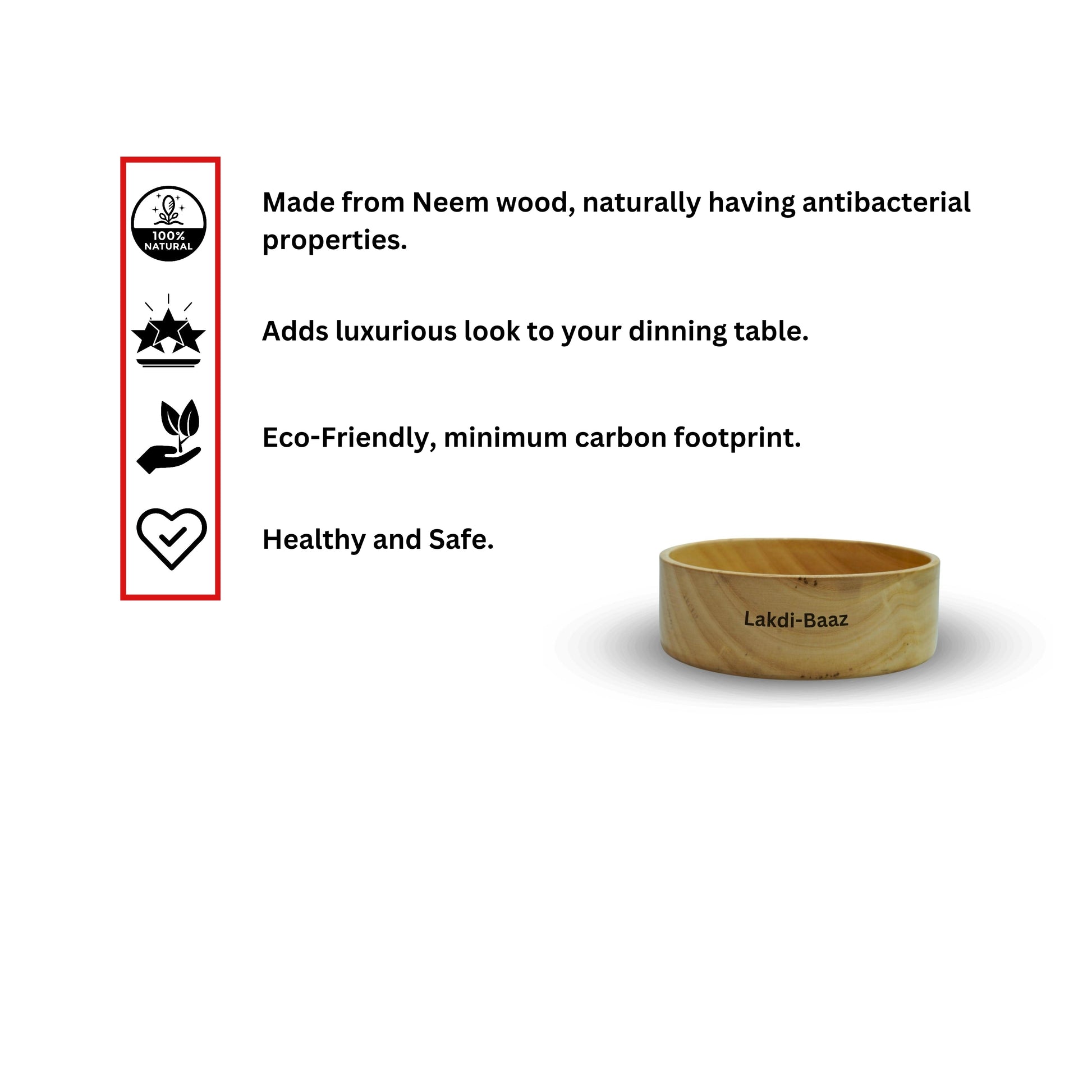 Buy Natural Non Toxic Wooden Bowl for Salad Made From Neem Wood No Color Used 750 ml 7Inch/17.5cm Natural