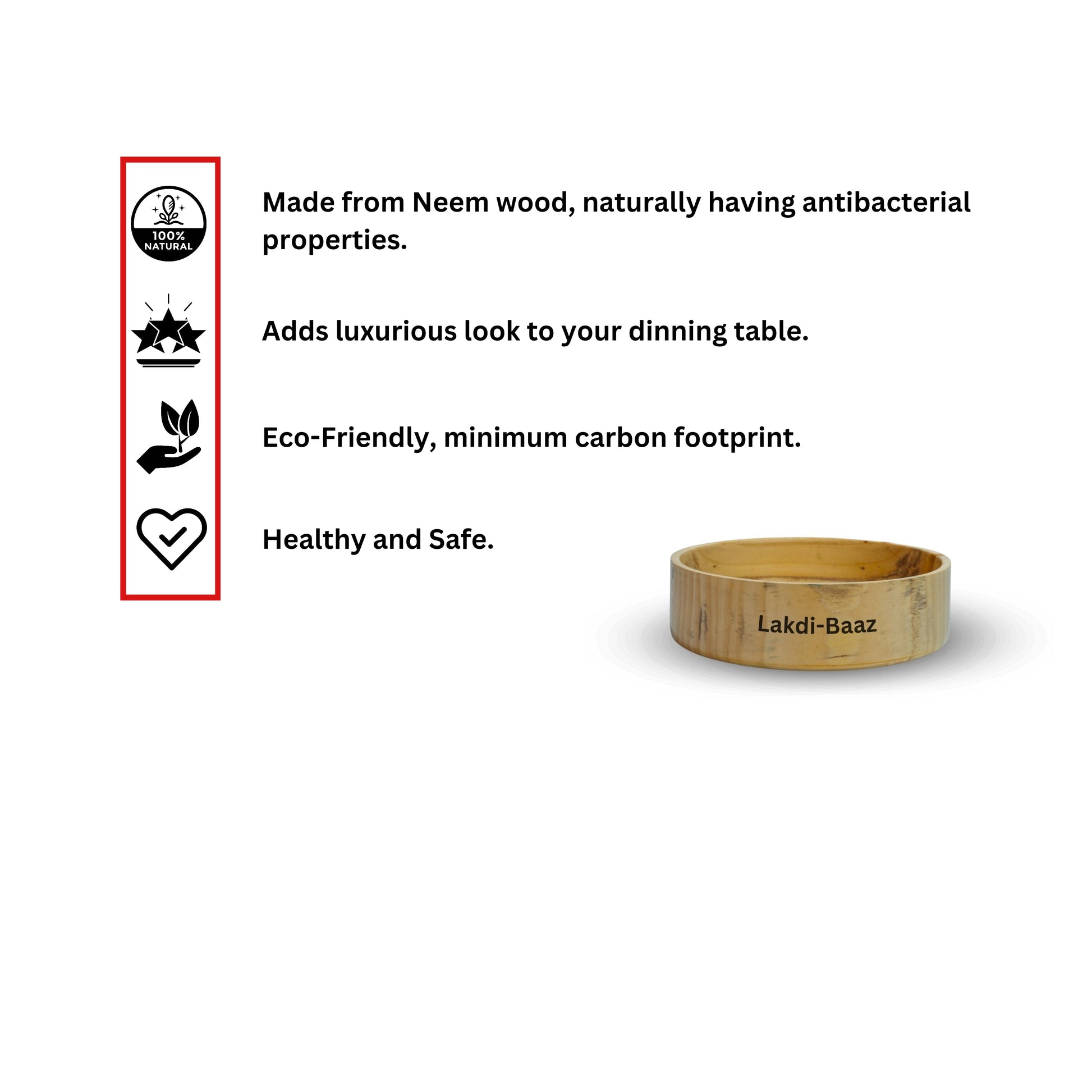 Buy Natural Non Toxic Wooden Bowl for Salad Made From Neem Wood No Color Used 1000ml 8inch/20cm Natural