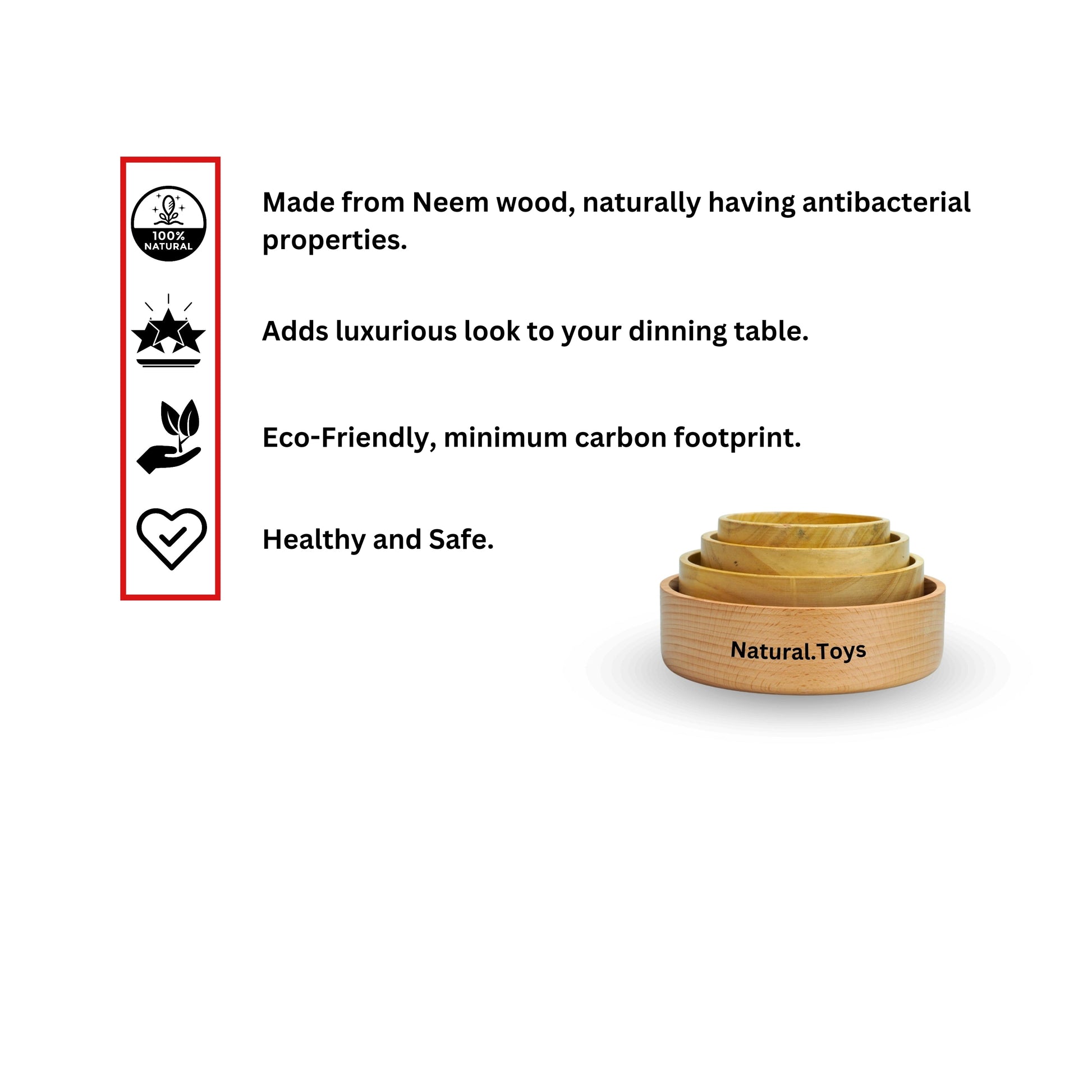 Buy Natural Non Toxic Wooden Bowl Set for Salad/Serving/Soup Made From Neem Wood No Color Used Natural