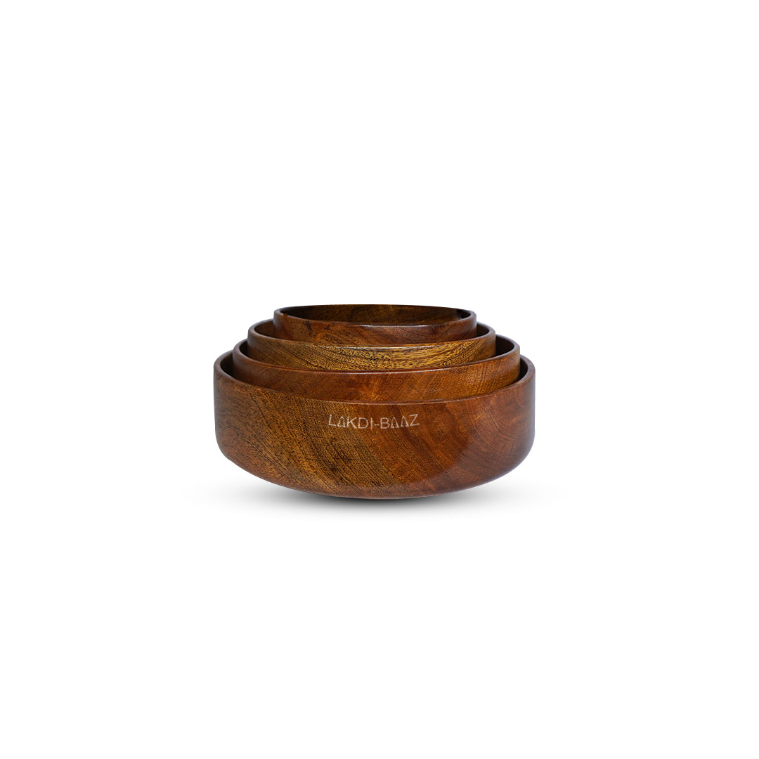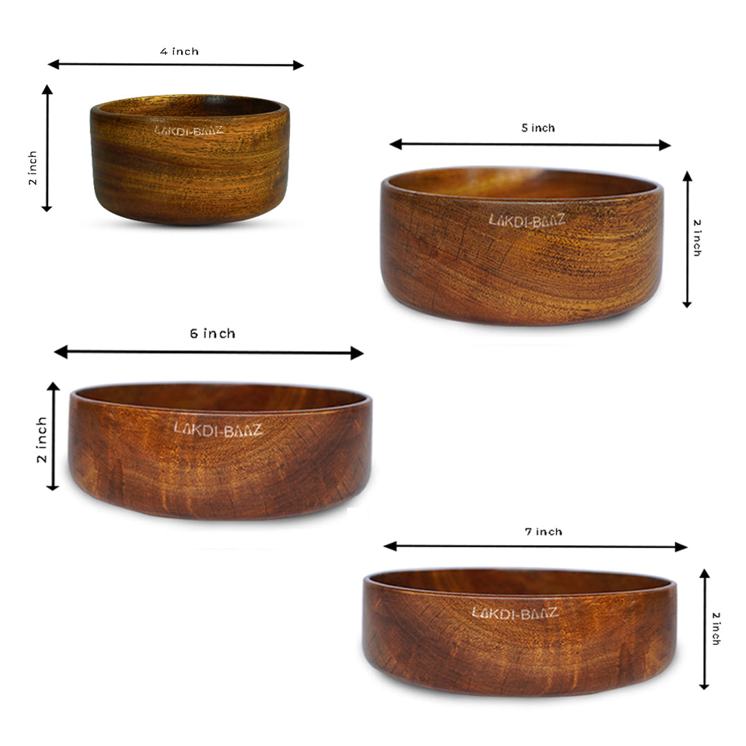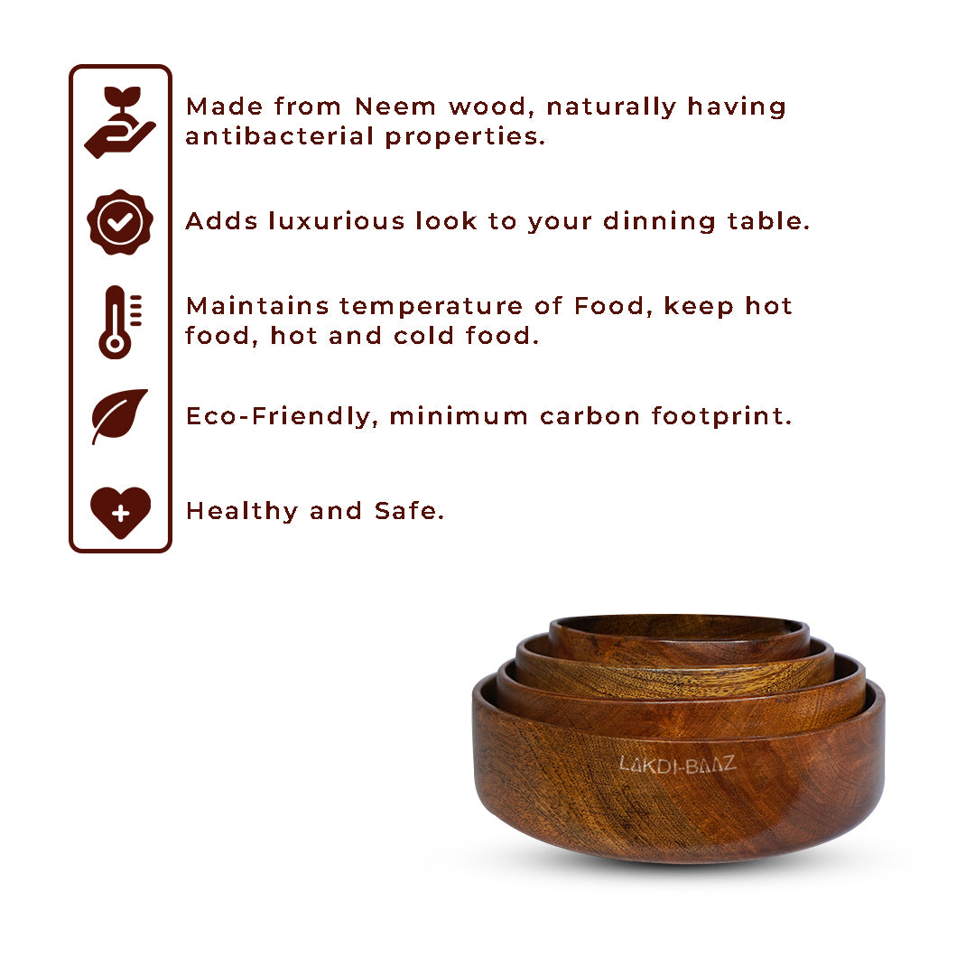 Buy Natural Non Toxic Wooden Bowl Set for Salad/Serving/Soup Made From Neem Wood No Color Used Teak