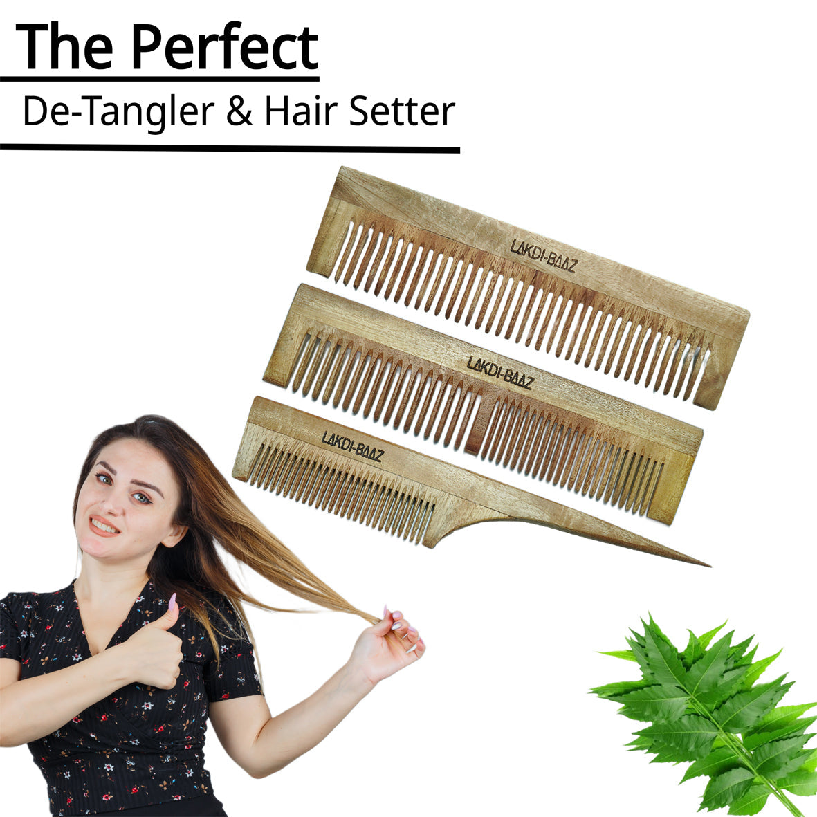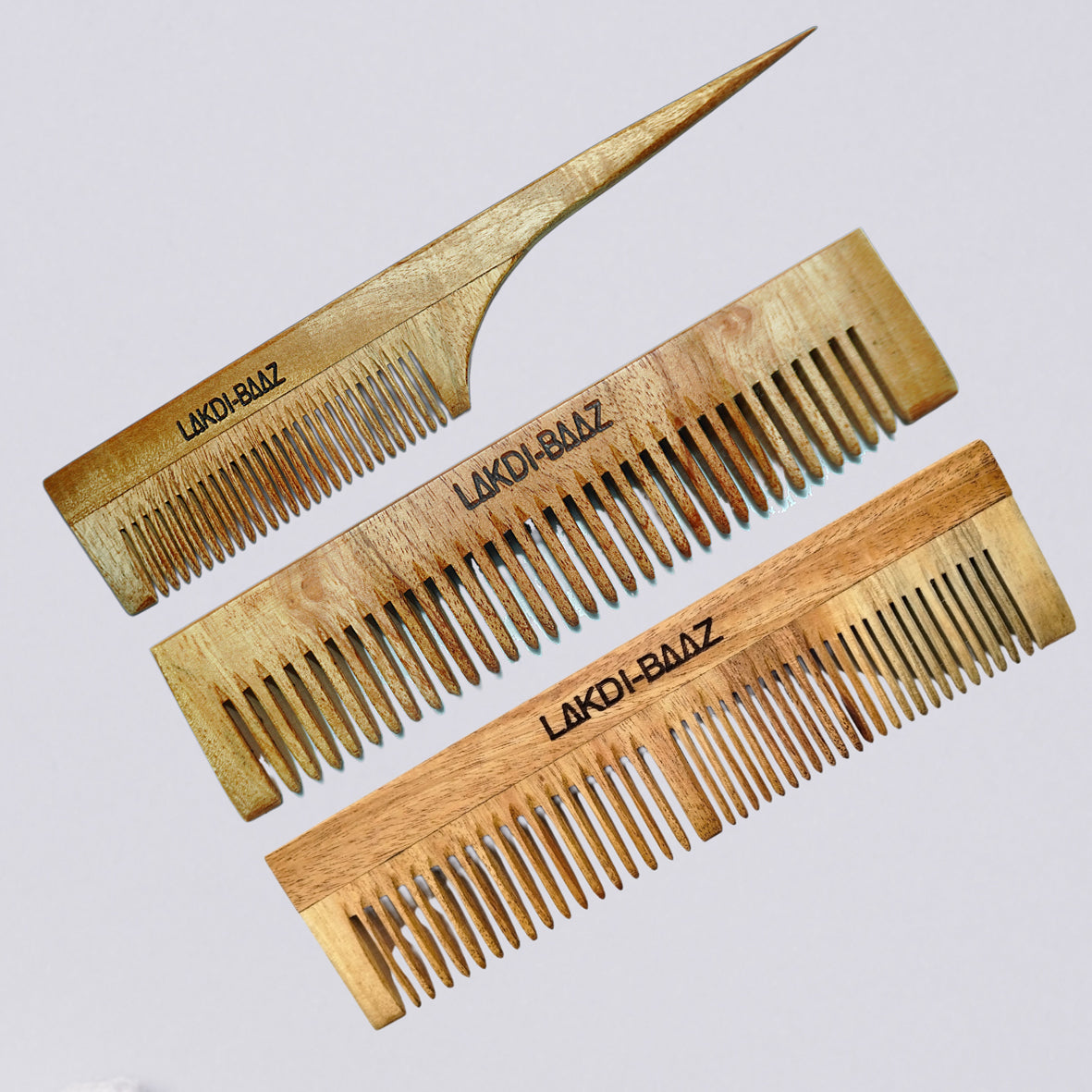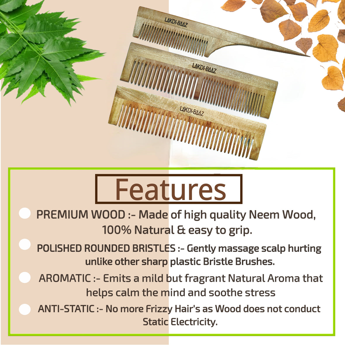 Buy LakdiBaaz Neem Wood Comb Wooden Tail Comb Wide Comb Wide & Narrow Wooden Comb for Hair Comb for Men and Women Set of 3