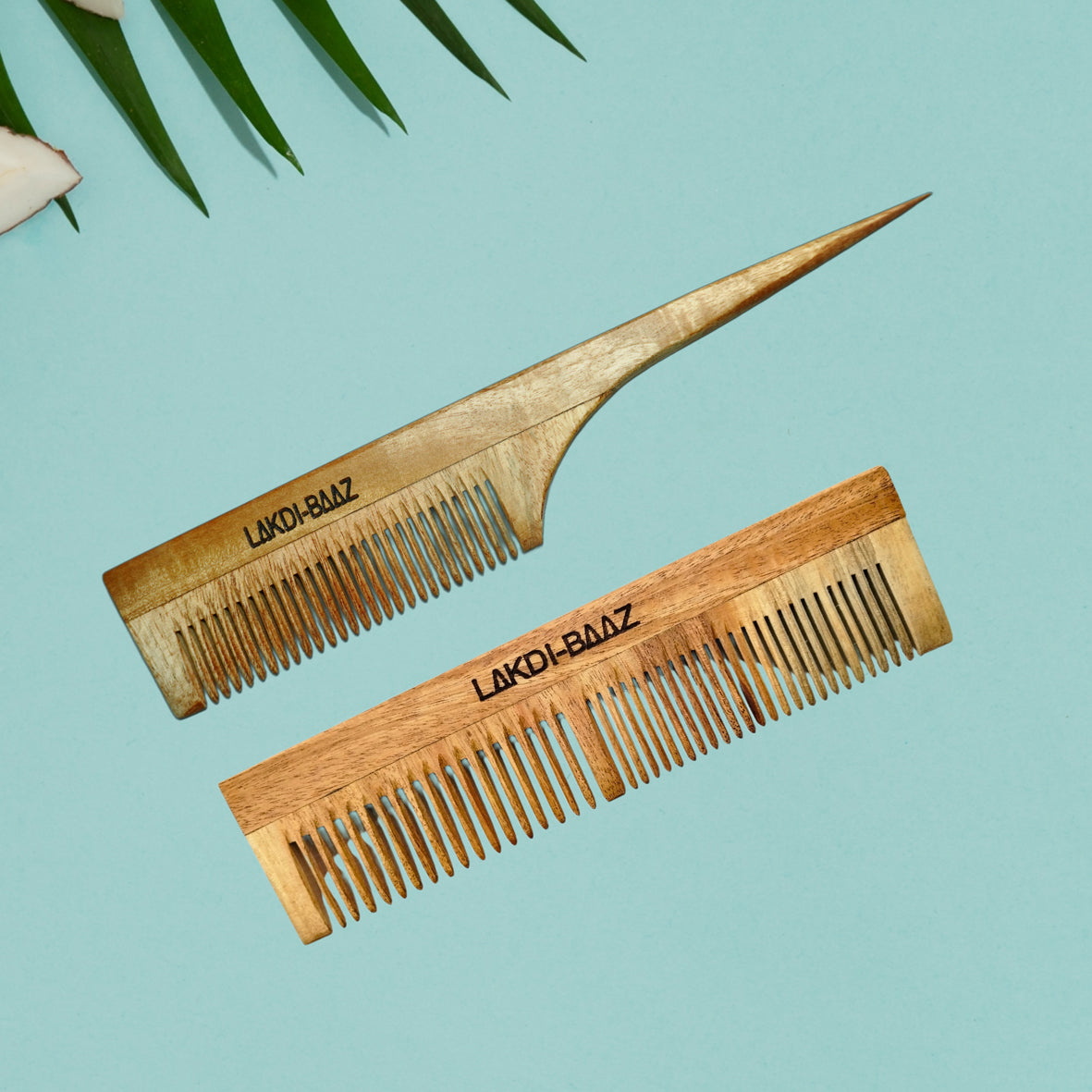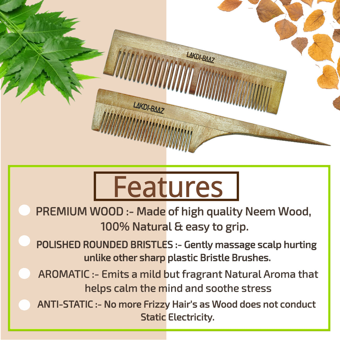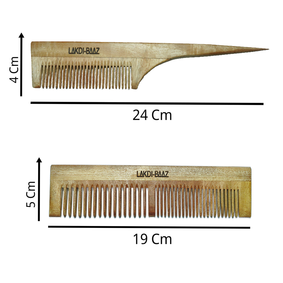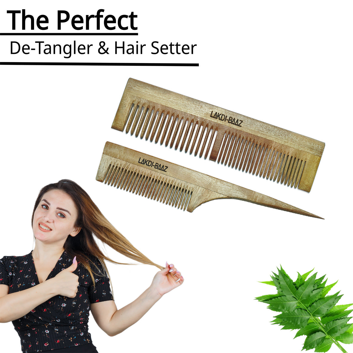Buy LakdiBaaz Neem Wood Comb Tail Comb and Wide Wooden Comb for Hair Growth Comb Hair Kangha for Men and Women Pair of 2