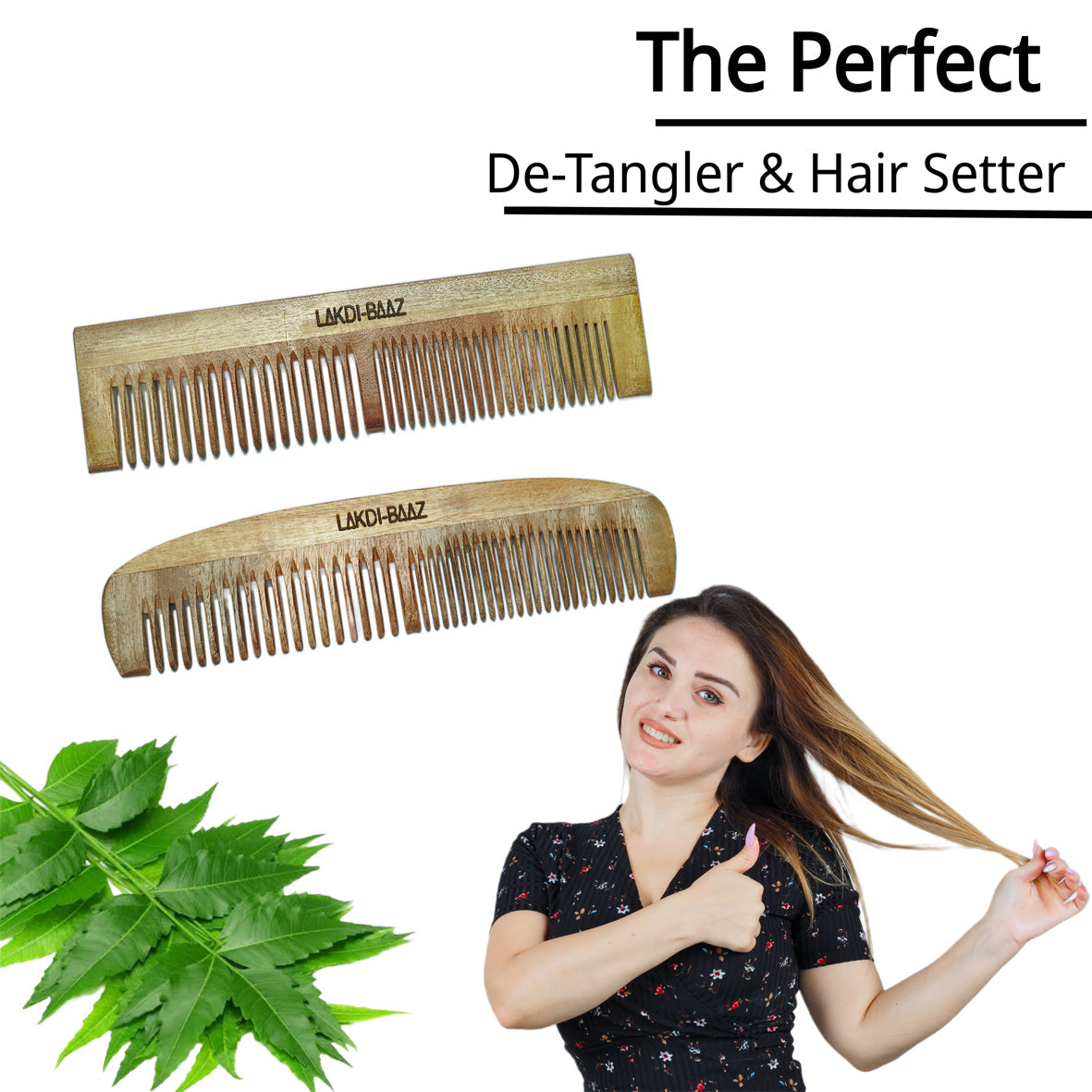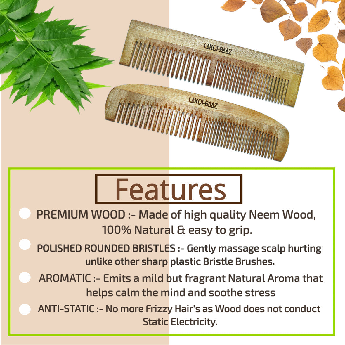 Buy LakdiBaaz Neem Wood Comb Ruby and Wide Wooden Comb for Hair Wooden Comb hair Kangha for Men and Women Set of 2