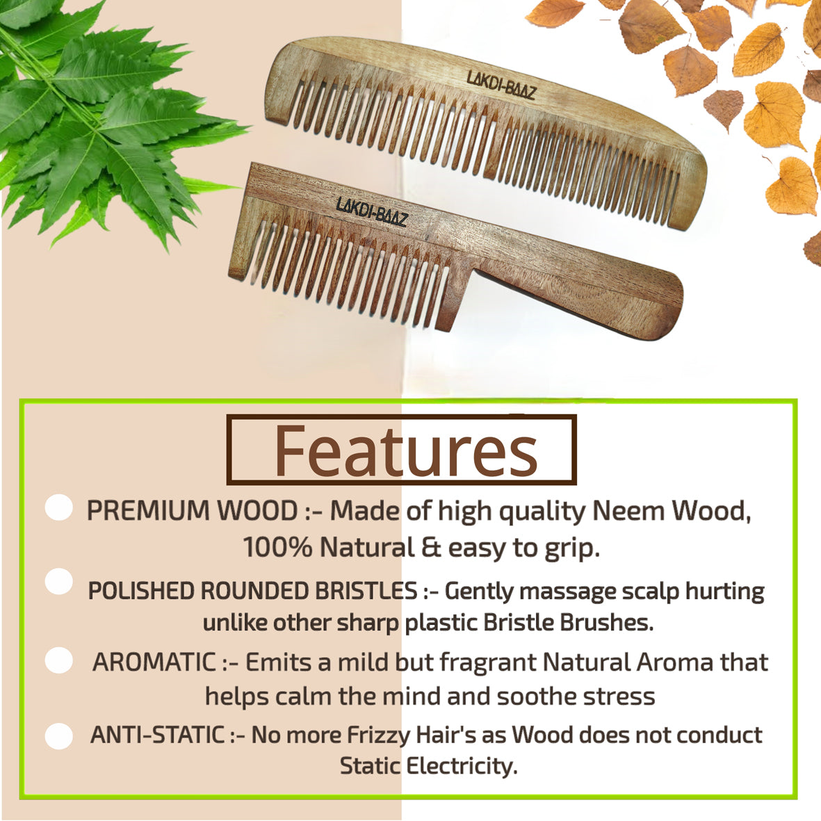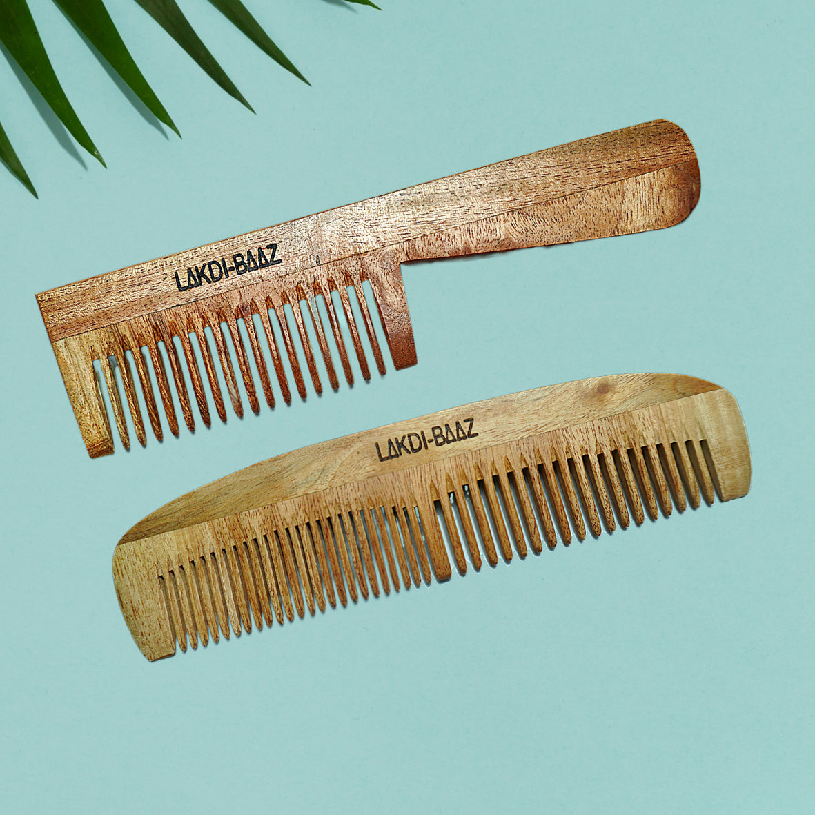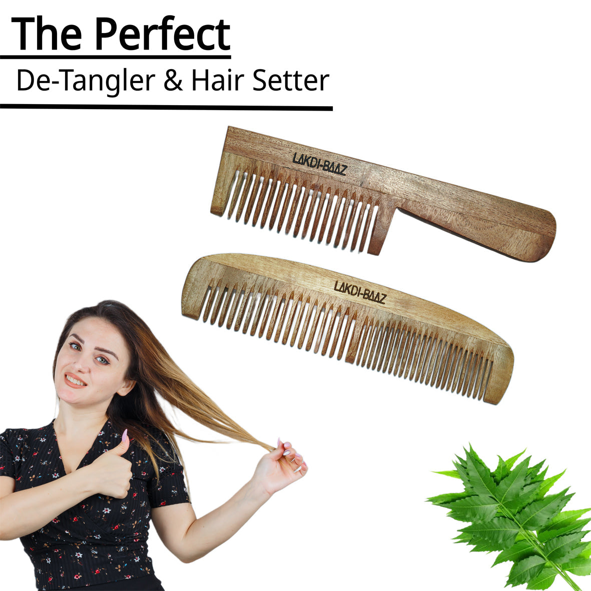 Buy LakdiBaaz Neem Wood Comb Handle and Handle-Free Wooden Comb for hair Comb hair Wooden Kangha Set of 2
