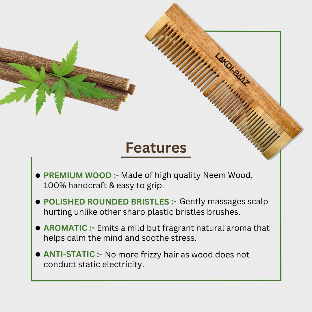 Buy Lakdi-Baaz |Neem Wood Comb for Hair Growth Wide and Narrow Wooden Comb Kanga For man woman