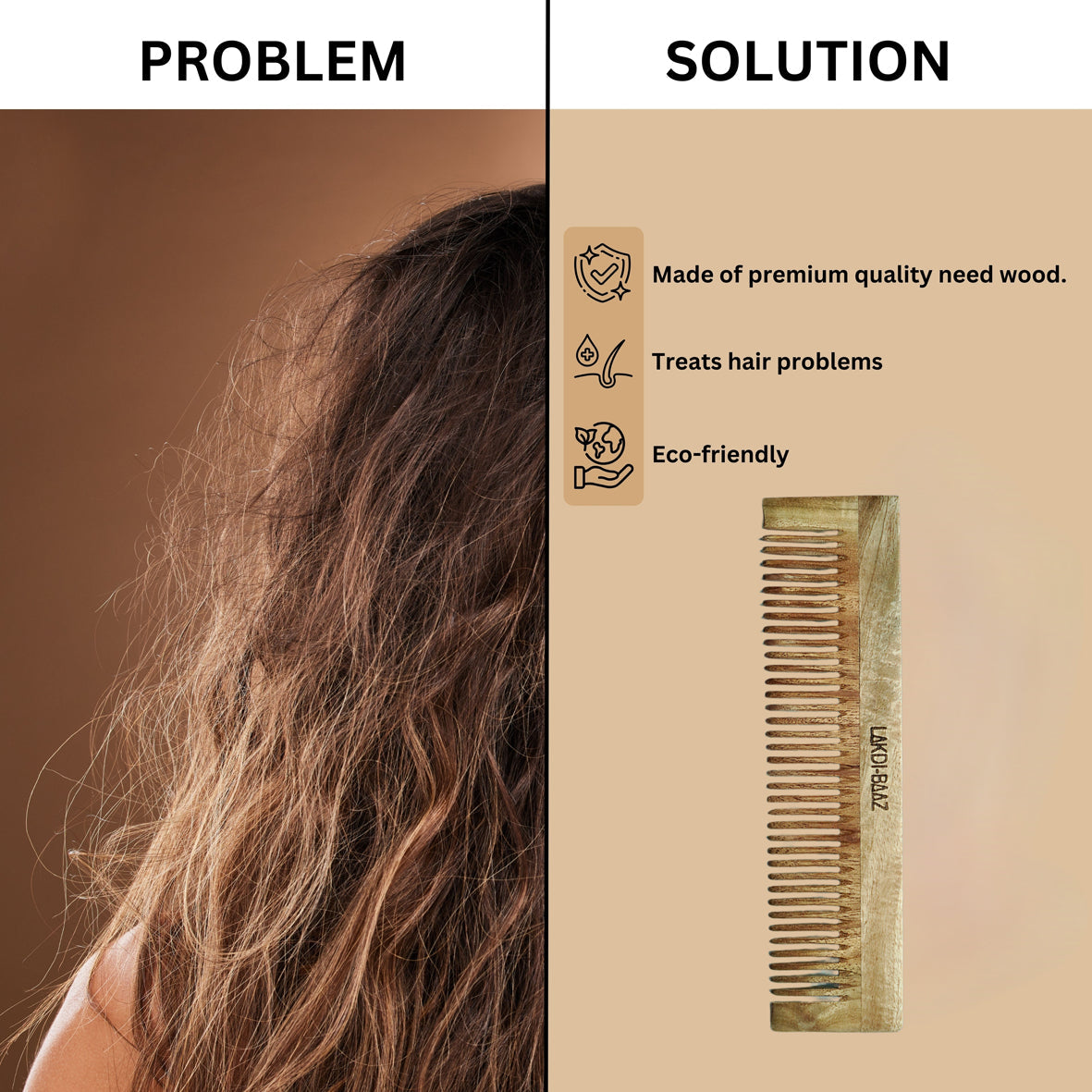 Buy Lakdi-Baaz | Neem Wood Comb for Hair Growth Wide Wooden Comb Kangha For man and woman