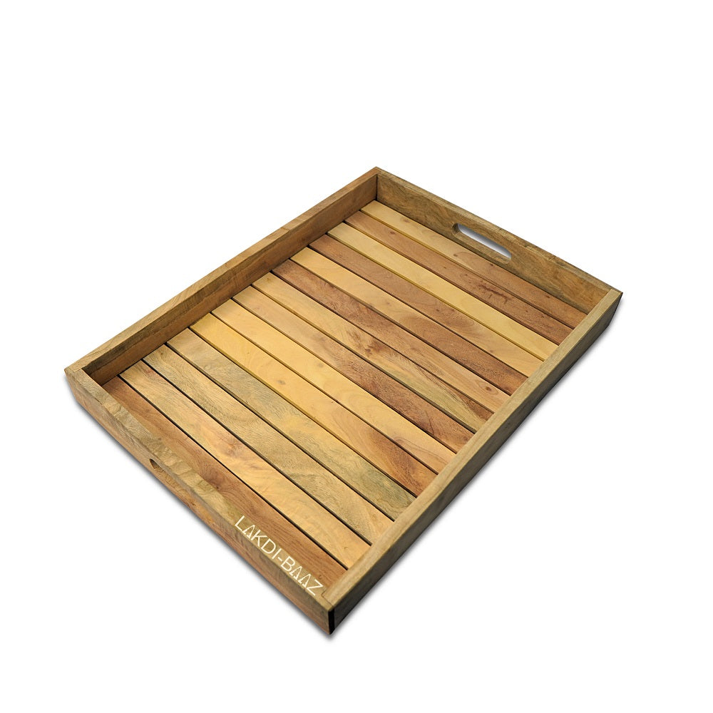 Buy Lakdi-Baaz| Premium Wooden Serving Tray Large Natural(16 X 12 Inch)