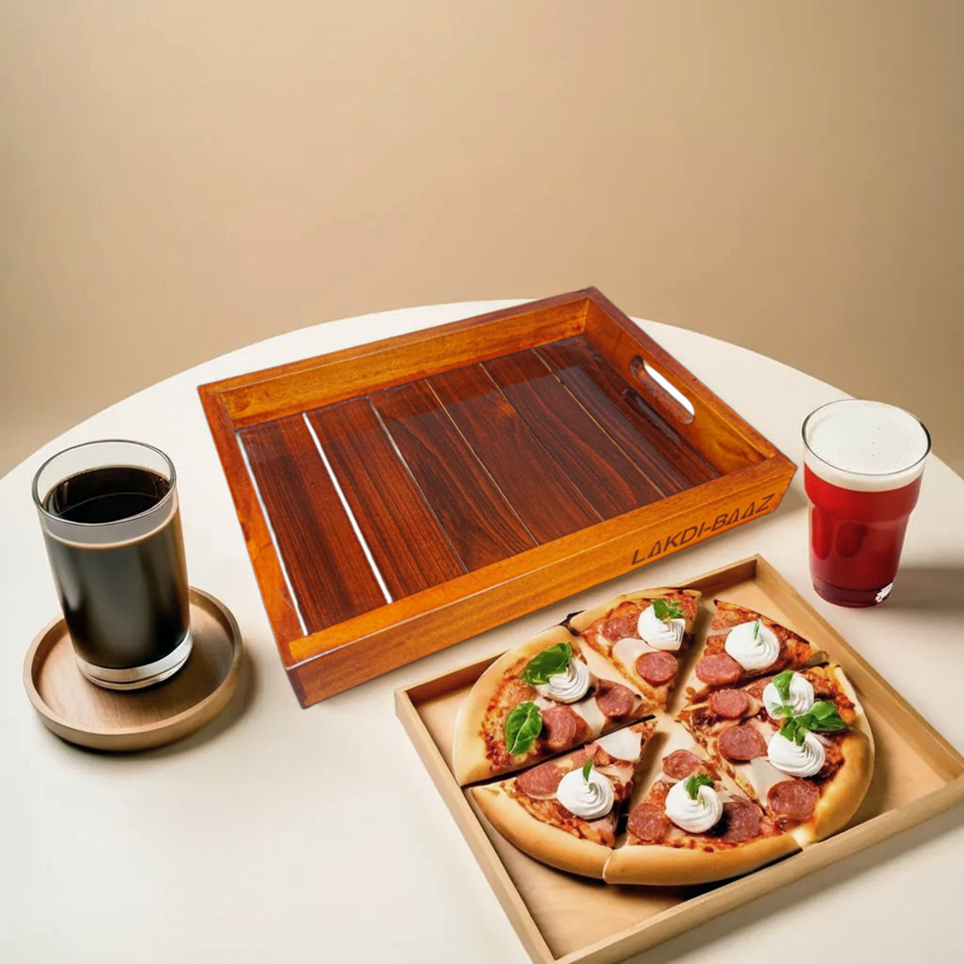 Buy Lakdi-Baaz| Premium Wooden Serving Tray Small Teak(7 X 10 Inch)