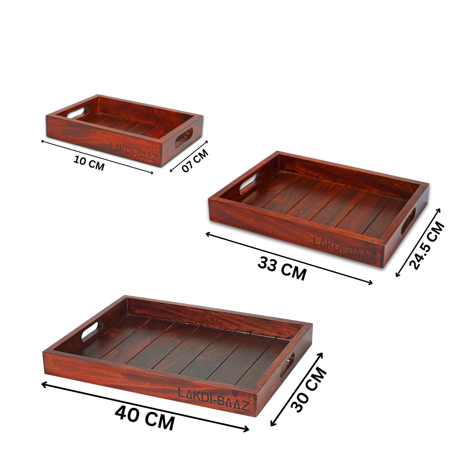 Buy Lakdi-Baaz| Premium Wooden Serving Tray Combo Teak