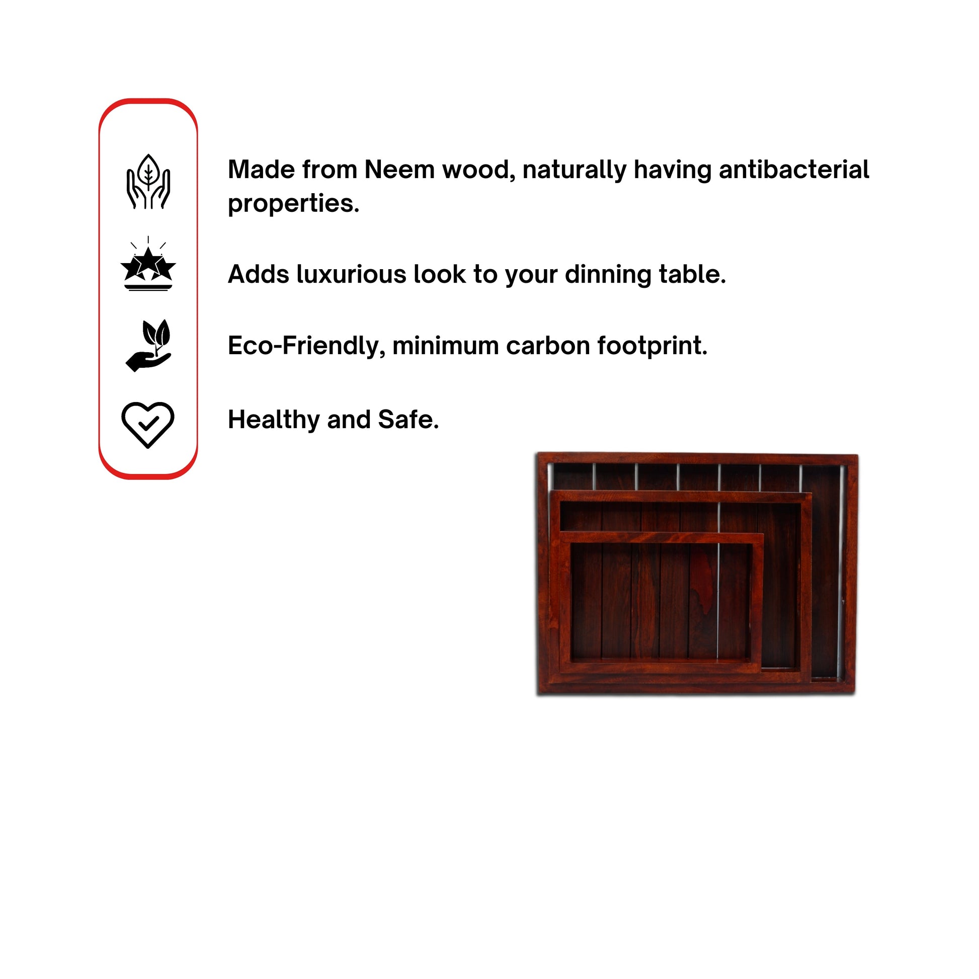 Crafted from premium quality, natural neem wood, this set is both durable and stunning. The rich, warm tones of the wood add a touch of elegance to any dining room or kitchen, making it the perfect accessory for those who want to add a touch of sophistication to their home.